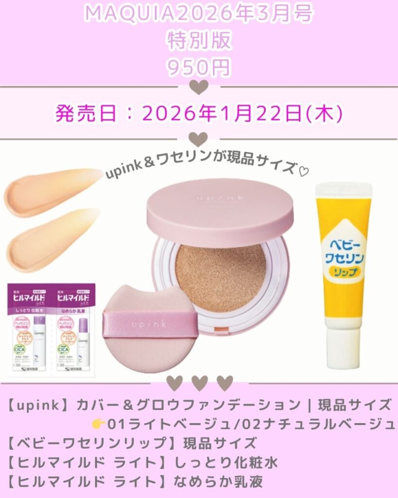 • 特別版 … upinkのクッションファンデ・ベビーワセリン現品サイズ付きで“お得重視派さん&ベースメイク好きさん”におすすめ